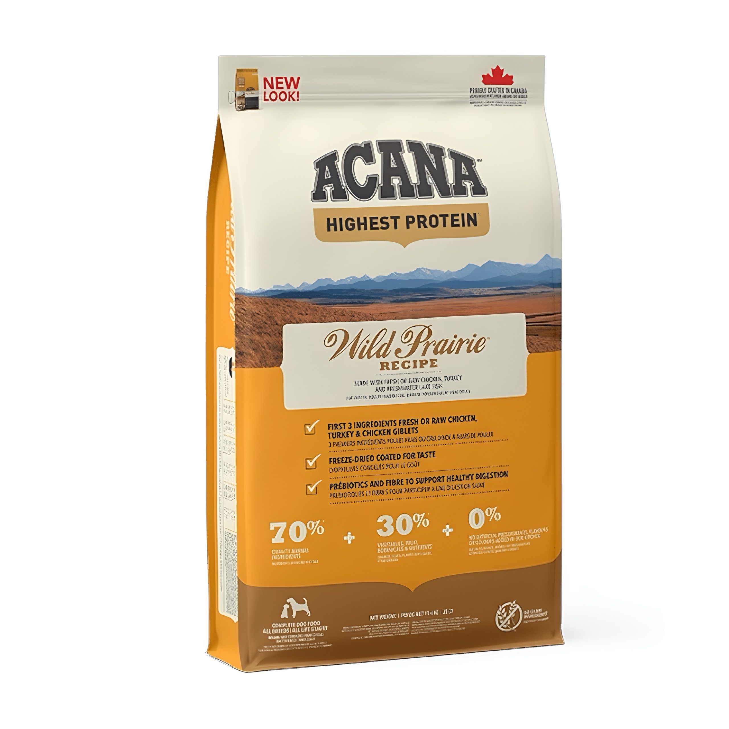 ACANA WILD PRAIRIE overflows with free-range chicken, turkey and whole eggs from nests, as well as fish caught in nature, in the cold northern lakes. Everything is delivered to us fresh and in WholePrey ™ proportions daily and so the ACANA WILD PRAIRIE is full of natural nutritional value. It is a recipe with limited carbohydrates, but rich in protein to promote optimal fitness in dogs of all breeds and all stages of life.
