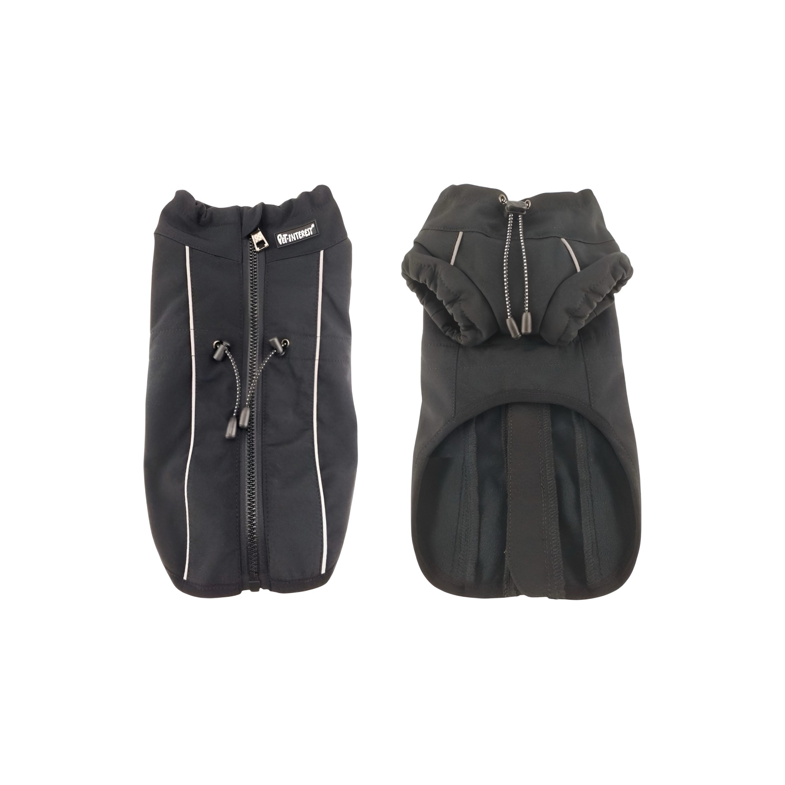 Semi-waterproof jacket with fleece lining for dogs. Protects against water and cold, while allowing the skin to breathe. With reflective strips for night walks and elastic at the waist and neck for a perfect fit