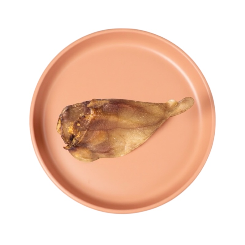 “Dehydrated Pig Ear for Dogs100% natural treat, with no added chemicals or preservatives.Benefits:Helps keep teeth clean by chewingHigh in protein and natural fatsHelps reduce stress and keeps your dog calmContains natural glucosamine and chondroitin for healthy jointsNatural source of collagen that supports skin, coat, and joint healthHow to Use:Always watch your dog while chewingGive fresh water to drinkNot for puppies under 6 months or dogs with pancreatitisStore in a cool, dry placeNatural product — size may vary”