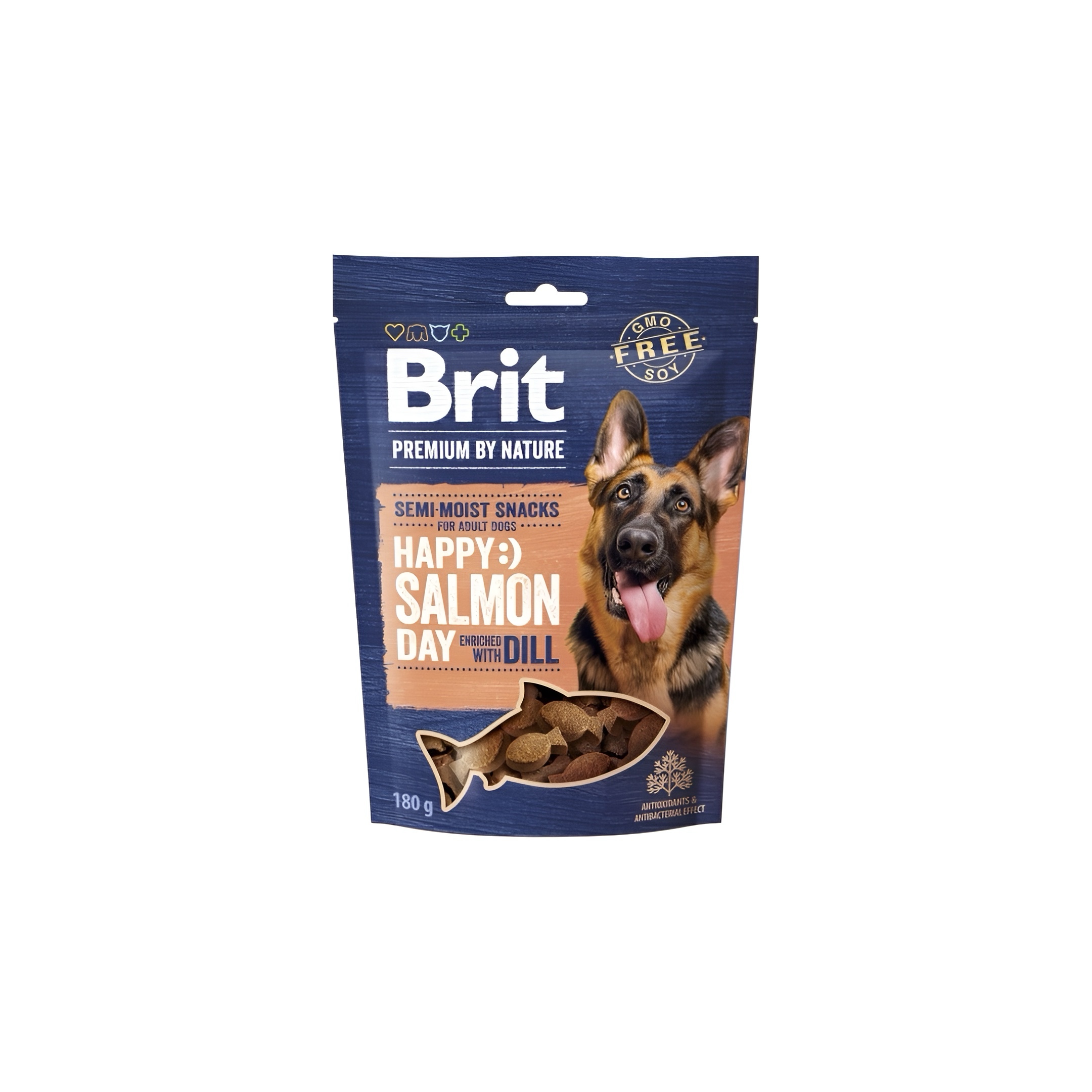 Happy Snacks Brit Premium by Nature treats with a semi-moist texture have a rich taste that your dog will love from the first bite.Dill is a natural antioxidant with antibacterial properties that support healthy digestion.Salmon is rich in omega-3 fatty acids that promote heart health, as well as skin and coat.Enriched with collagen to support joint health and mobility.Contains antioxidant-rich herbs for overall dog health and vitality.Contains no sugar, soy, GMOs or artificial additives.The semi-soft texture makes these snacks ideal for dogs of all sizes.