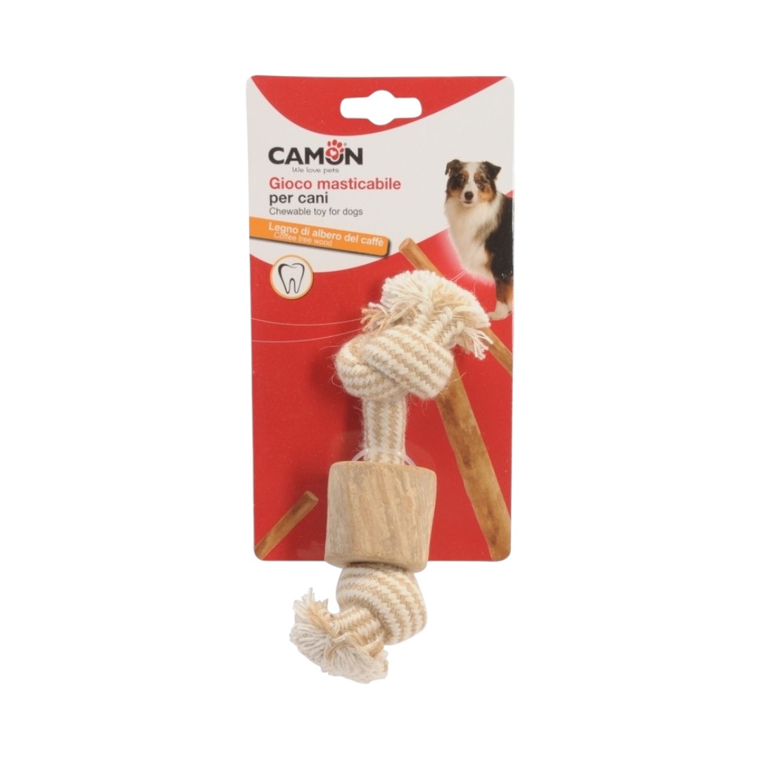 “Dog Toy – Double Knot Rope with Coffee WoodOffer your dog a healthy 100% natural pastime with this durable toy made of coffee wood.Its shape and high consistency satisfy the animal’s innate need to chew and massage teeth and gums, thus helping to improve their oral health.This game is very useful against boredom and is long-lasting.Available in 3 sizes.100% naturalEco-friendly and sustainableA help for the oral health of the dog Durable and long lastingLength: 20 cm “