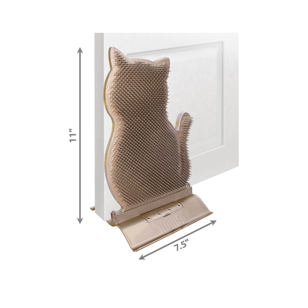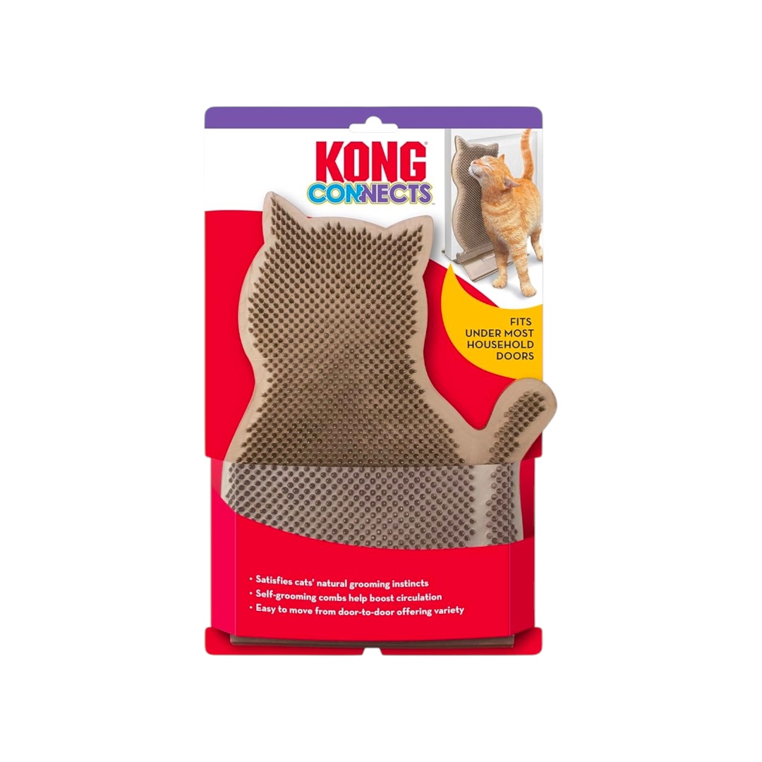 The KONG Connects Kitty Comber was created to satisfy cats’ natural grooming instinct. Cats rub against it and comb themselves as they enjoy their massage! Contains catnip. With a special base to also function as a door stopper.