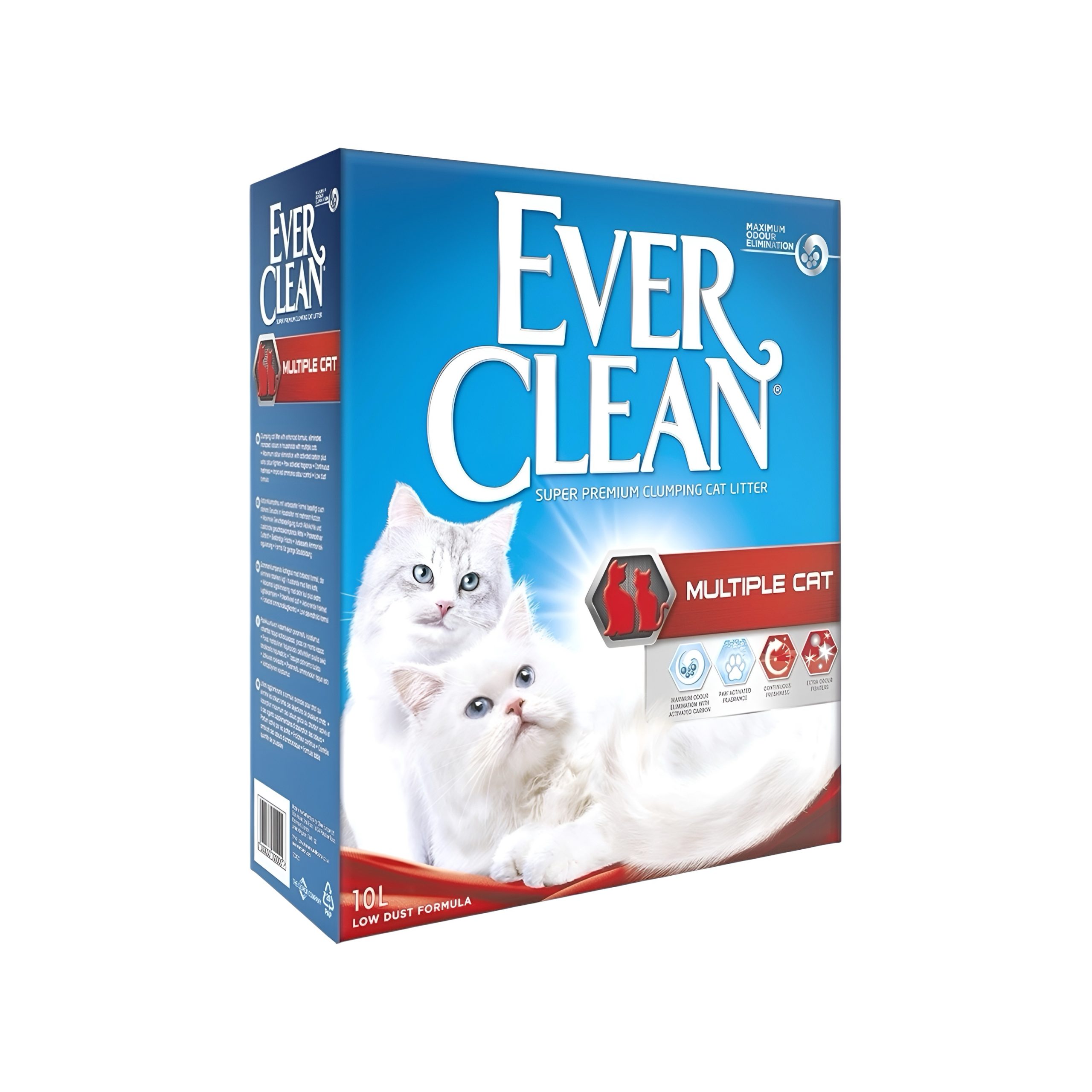 “If you’re lucky enough to share your home with more than one cat, Ever Clean’s Multiple Cat will provide extra odour fighters for litter trays exposed to high usage.Packed with extra odour fighters that can deal with heavy use litter trays in multiple cat households.For continuous freshness, Ever Clean is effective at eliminating cat urine, faecal and ammonia odours.Our unique activated carbon technology traps and locks in odours thereby eliminating malodour instead of just masking it.Paw-activated fragrance technology releases a fresh scent on demand when the litter tray is in use.10L BoxD11.7 x W28.8 x H33.8 cm”