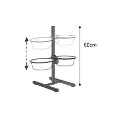 “This Otis dog food bowl with stand is mega handy! You can adjust the height so it fits perfectly for your loyal four-legged friend. It comes with 2 bowls and is available in 3 sizes.Material: inox bowls in a metal standAdjustable in height by means of a screw lockNon-slipDuo dinner: 2 removable feeding and drinking bowls in 1 holderThe removable bowls are dishwasher safe, but not the standErgonomic design. 62cm x 27cm x 63,5cm – 2x4L – ∅ 2x27cm”