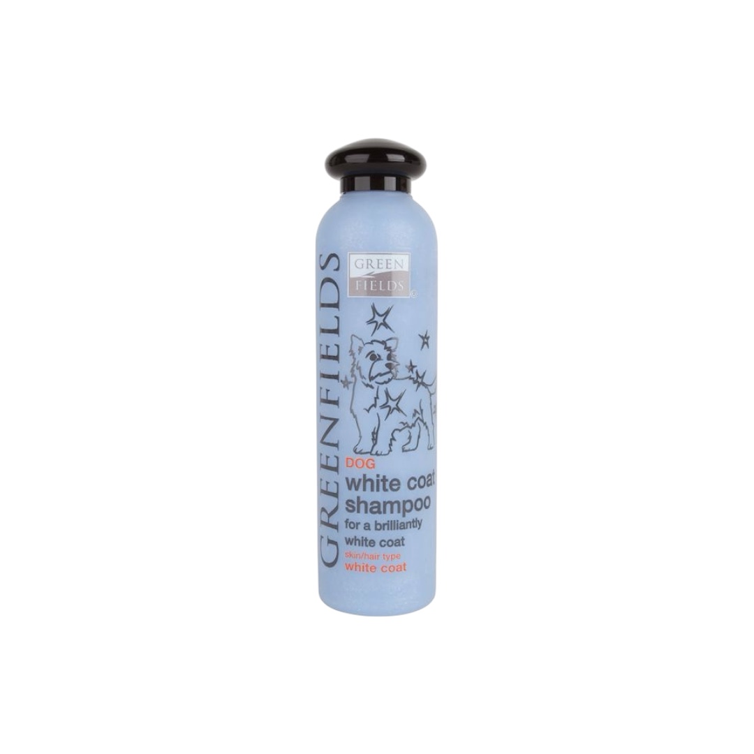 “The luxurious White Coat Shampoo of Greenfields is carefully blended with ingredients to help maintain the richness and brilliance of dogs with a white coat.DetailsChamomile extracts leave the coat silky, shiny and healthy. The refreshing fragrance keeps the coat smelling fresh and clean. Your dog deserves to look stunning again! * Formulated for dogs with a white or light coat * Enriches the natural colour * Leaves a healthy, silky and shiny coat * Makes the coat easy to comb * Suitable for regular use * Paraben-free * pH balanced * Perfume is allergy free”