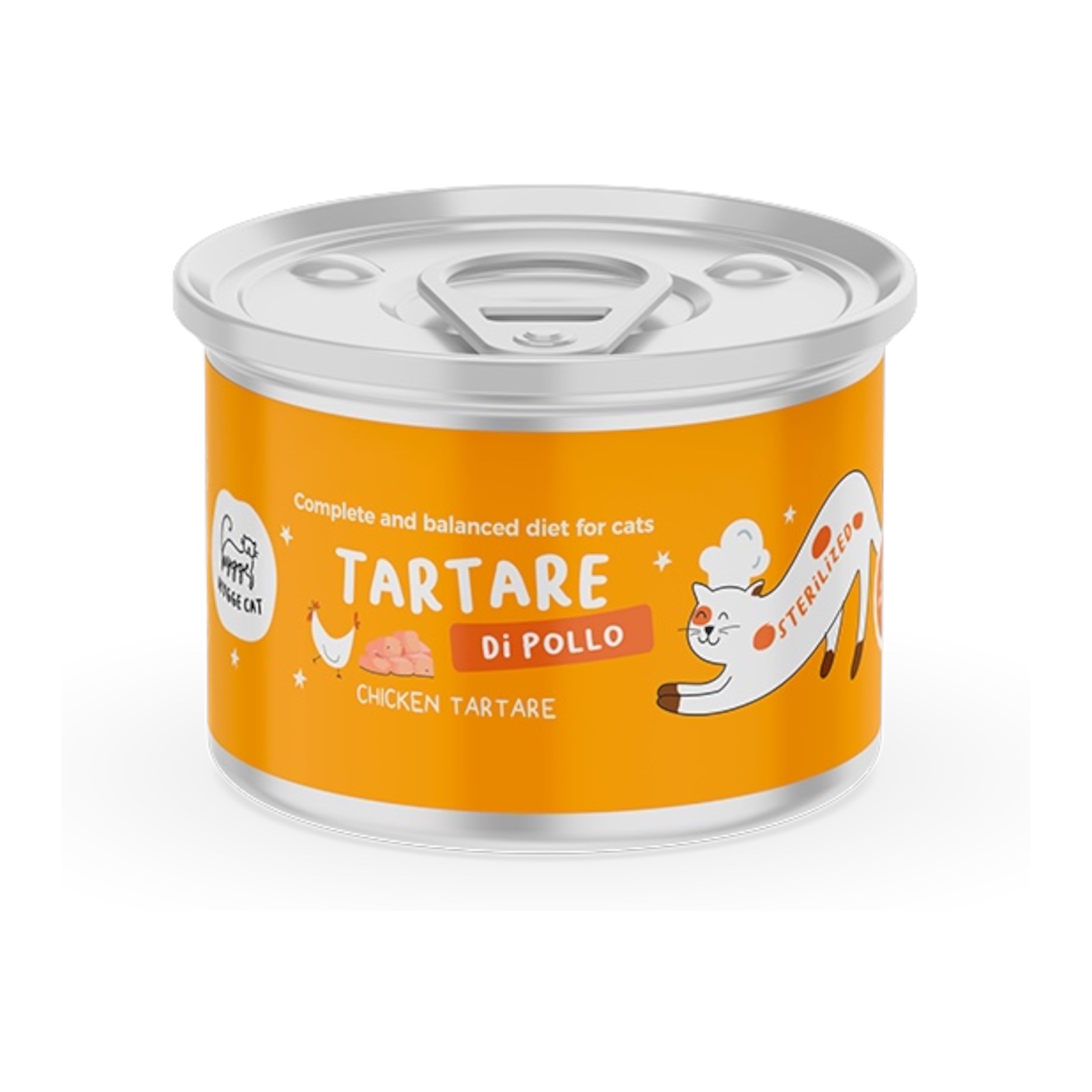 Light, tasty and natural: Hygge Cat Chicken Tartare is specially designed for sterilized cats, who require a balanced but flavorful diet. Made with selected chicken (70%) , meat broth and a touch of salmon oil to support skin and coat, they offer all the nutrients your cat needs, with a controlled calorie intake. No grains , no artificial colors or flavors, no added sugar or salt. Only genuine ingredients, for a complete meal that respects its nature and its health. Each box contains 85gr