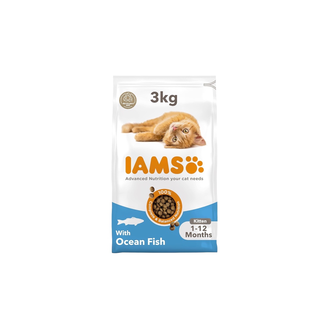 “HEALTH FOCUSED – Supports digestive, bone, brain, and eye health for a well-rounded diet.ALL BREED FRIENDLY – Perfectly formulated for kittens of all breeds and sizes.CONVENIENT STORAGE – Easy to store in a cool, dry place for long-lasting freshness.FLAVORFUL ADVENTURE – Delicious ocean fish flavor that even the pickiest eaters will love.NOURISH WITH PURPOSE – Packed with essential nutrients for your growing kitten’s health.IAMS Complete Dry Cat Food for Kittens with Ocean Fish is a premium 3 kg dry food designed specifically for kittens. With a delicious seafood flavor and a wheat-free formula, it supports essential health aspects like digestion, bone strength, brain function, and eye care. Suitable for all breeds, this nutrient-rich food ensures your kitten thrives while enjoying every bite.”