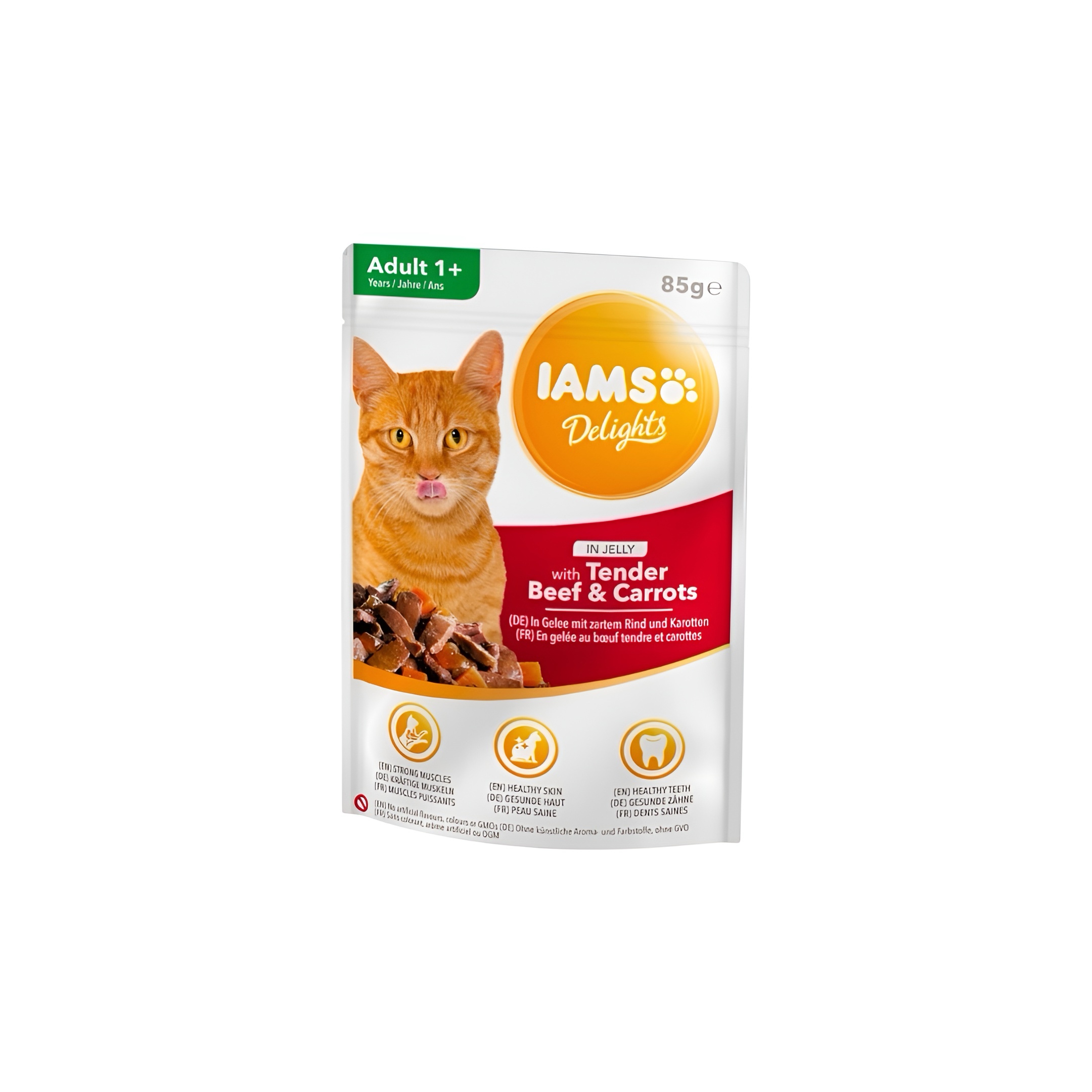 IAMS Delights with Chicken in Gravy is a 100% complete and balanced premium wet food for kittens. Each recipe is lovingly prepared with high quality ingredients and offers an irresistible taste to promote healthy vitality and delight your cat. Cats can absorb nutrients from their food which helps them to look and feel great on the inside and out.