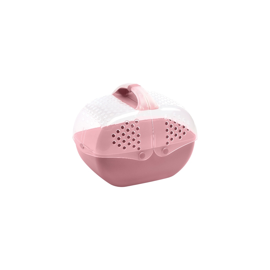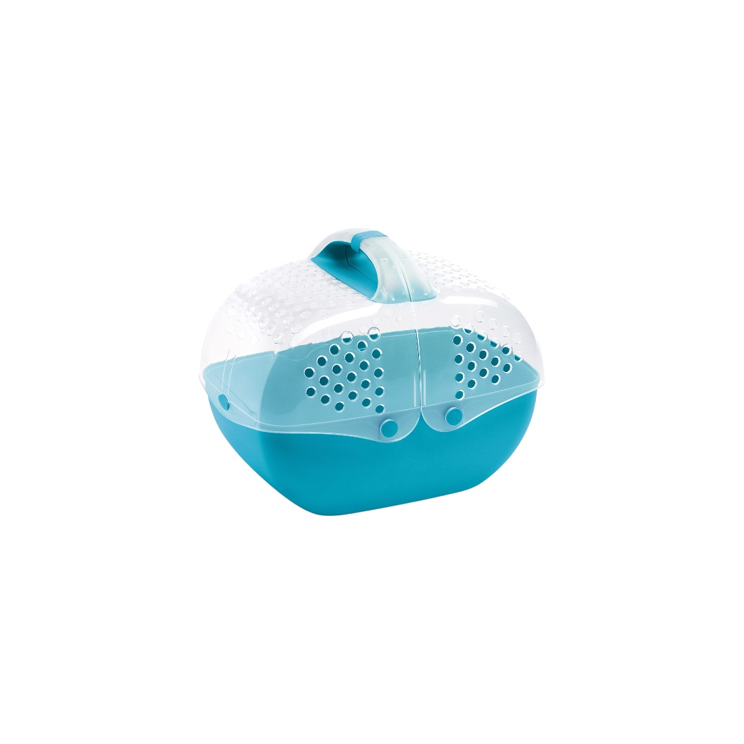 “36x25x29cmBaggy is a practical, lightweight and very comfortable pet carrier for rabbits, guinea pigs, chinchillas and ferrets, thanks to the bellows opening with an ergonomic handle and safety closure. Ideal for short trips or to take your little friend to the vet. Three brilliant green, lilac and orange colors make the Baggy carrier cheerful and trendy thanks to the color combination with the transparency of the upper opening that allows you to see your pet perfectly. The ventilation holes on the top ensure perfect ventilation for the maximum comfort of your rodent.”