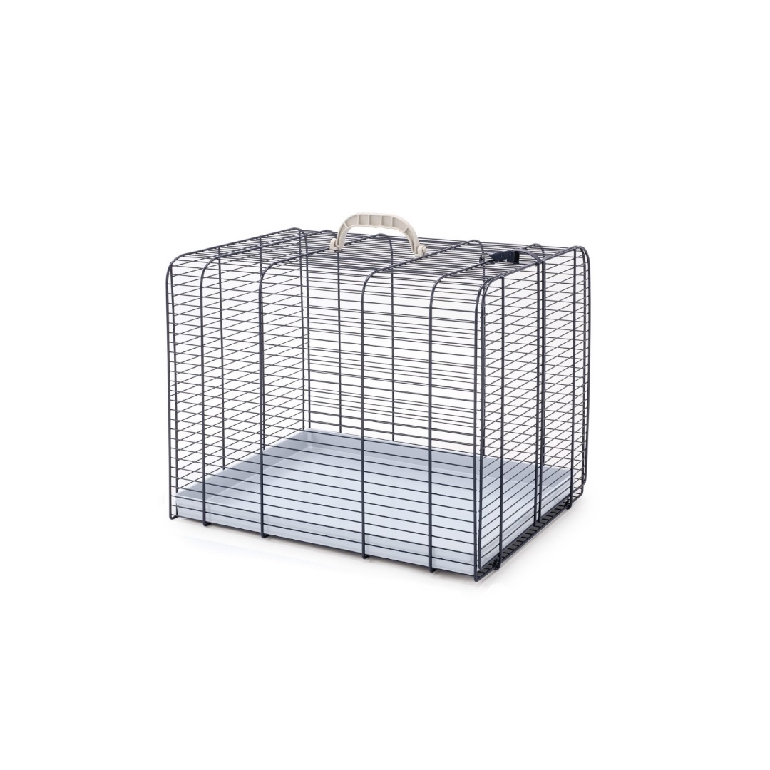 “LARGE: (L) x 48cm (W) x 35cm (H) x 39cmTo bring your cat with you, in a short or long journey or for cat shows, cat transport is perfect. This pet carrier is made of a blue painted metal mesh and a comfortable removable sturdy plastic bottom for easy cleaning. The front opening with safety hook allows you to manage your cat in total tranquility. Easily transportable thanks to the handle on the top. Available in two sizes depending on the size of your kitty.”