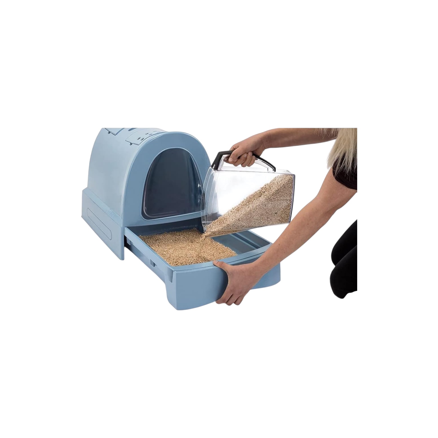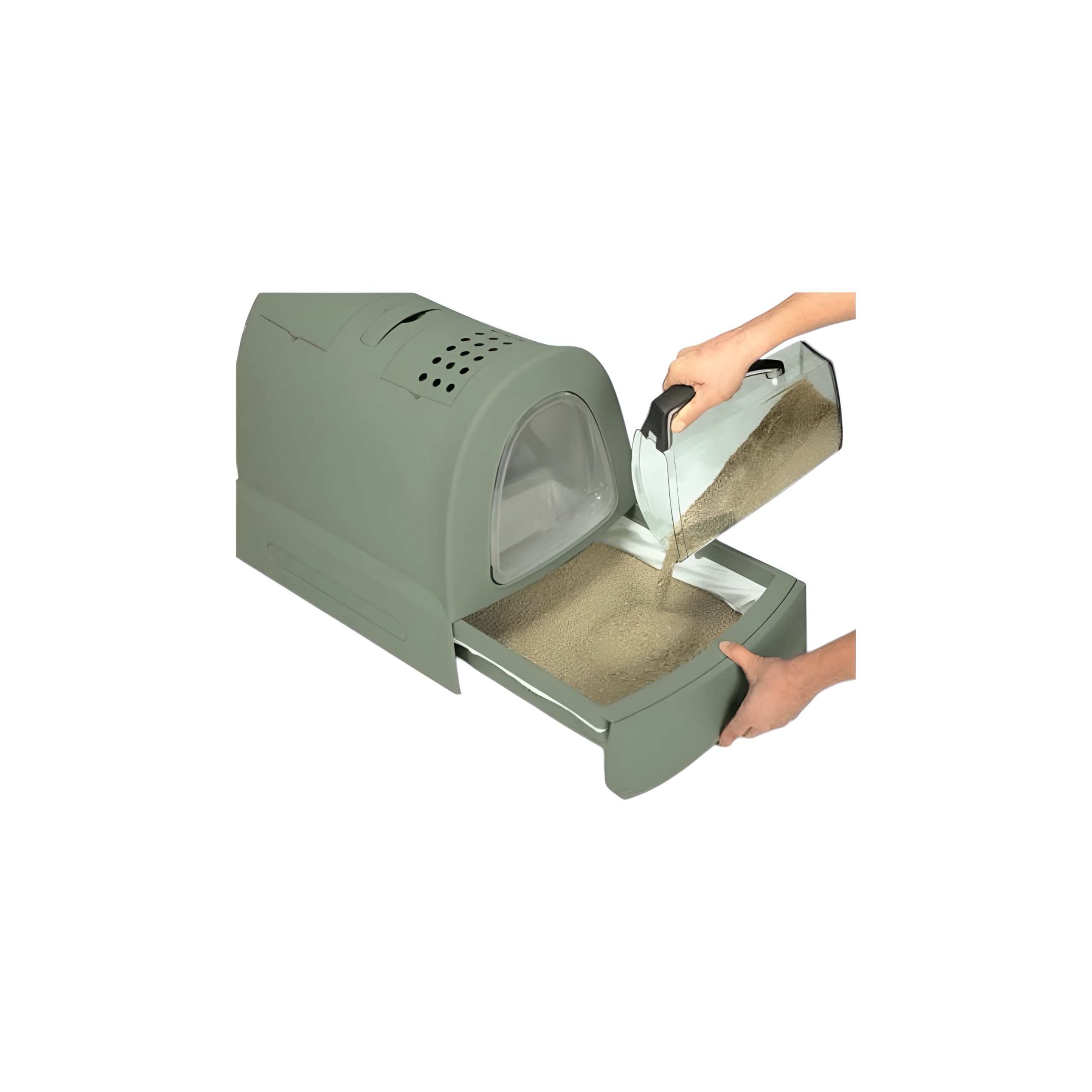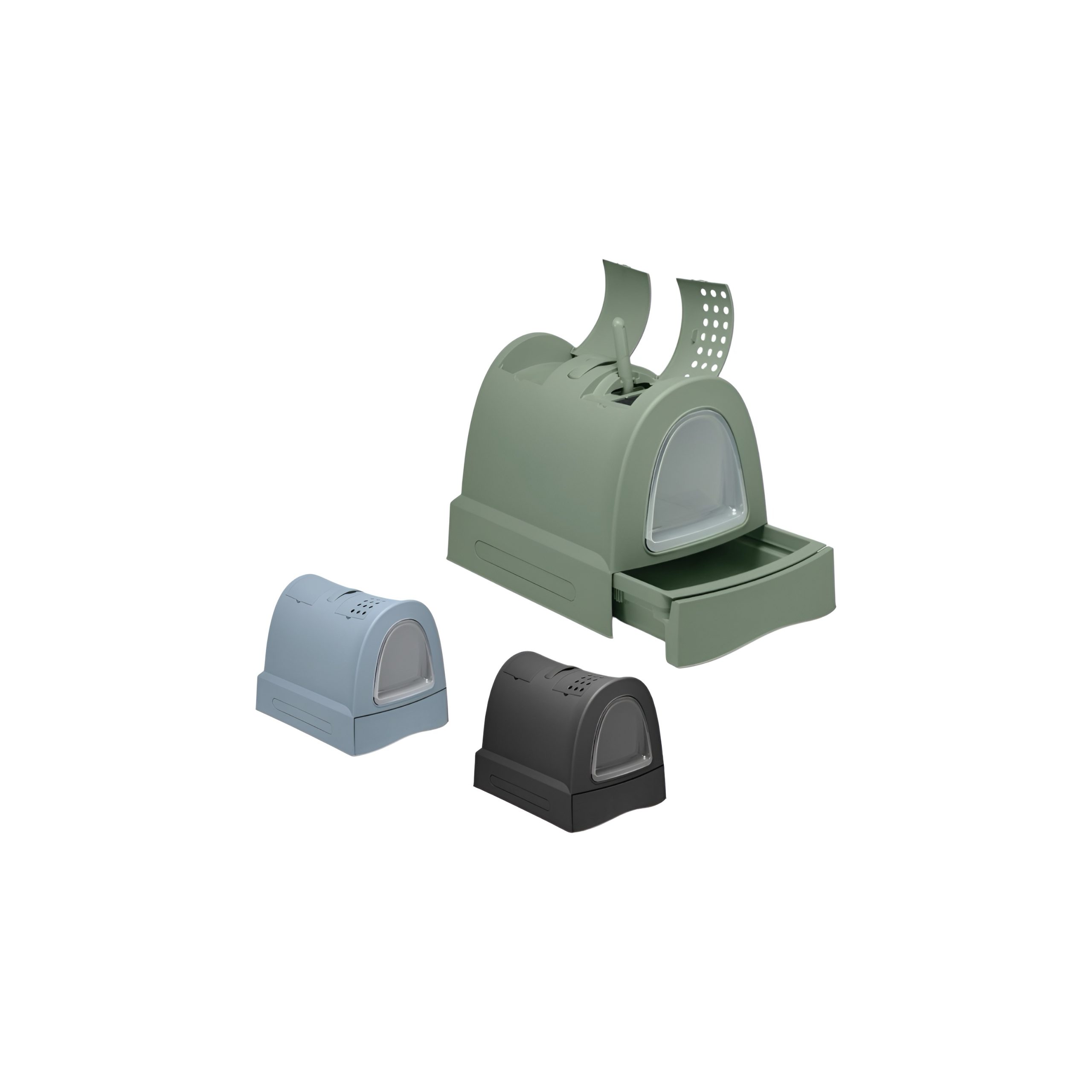 The Imac Transport Box Linus Second Life Green 56 x 40 x 42.5 cm is a spacious plastic litter box with extendable drawer made of environmentally friendly, recycled plastic. Second Life Plastic is a revolution in the environmentally friendly production of pet supplies. The articles of Imac Second Life are made of high quality plastic, made from recycled and cleaned household waste. The products themselves are also recyclable, which means that the production of these items causes much less emissions and impact on the environment. This spacious cat sofa from Imac is made of this recycled plastic. The Zuma is equipped with a retractable grit box, which makes changing the litter box easy. The box has a flap, ventilation grid (with odor filter), handle and scoop that you can store at the top. An environmentally friendly produced litter box with a modern design that offers everything you need!-Litter box made of environmentally friendly, recycled plastic-Modern design-With handy pull-out tray that makes changing easier without having to remove the entire top cover-With ventilation grille and filter-Equipped with a scoop that can be stored at the topDimensions: 56 x 40 x 42.5 cm