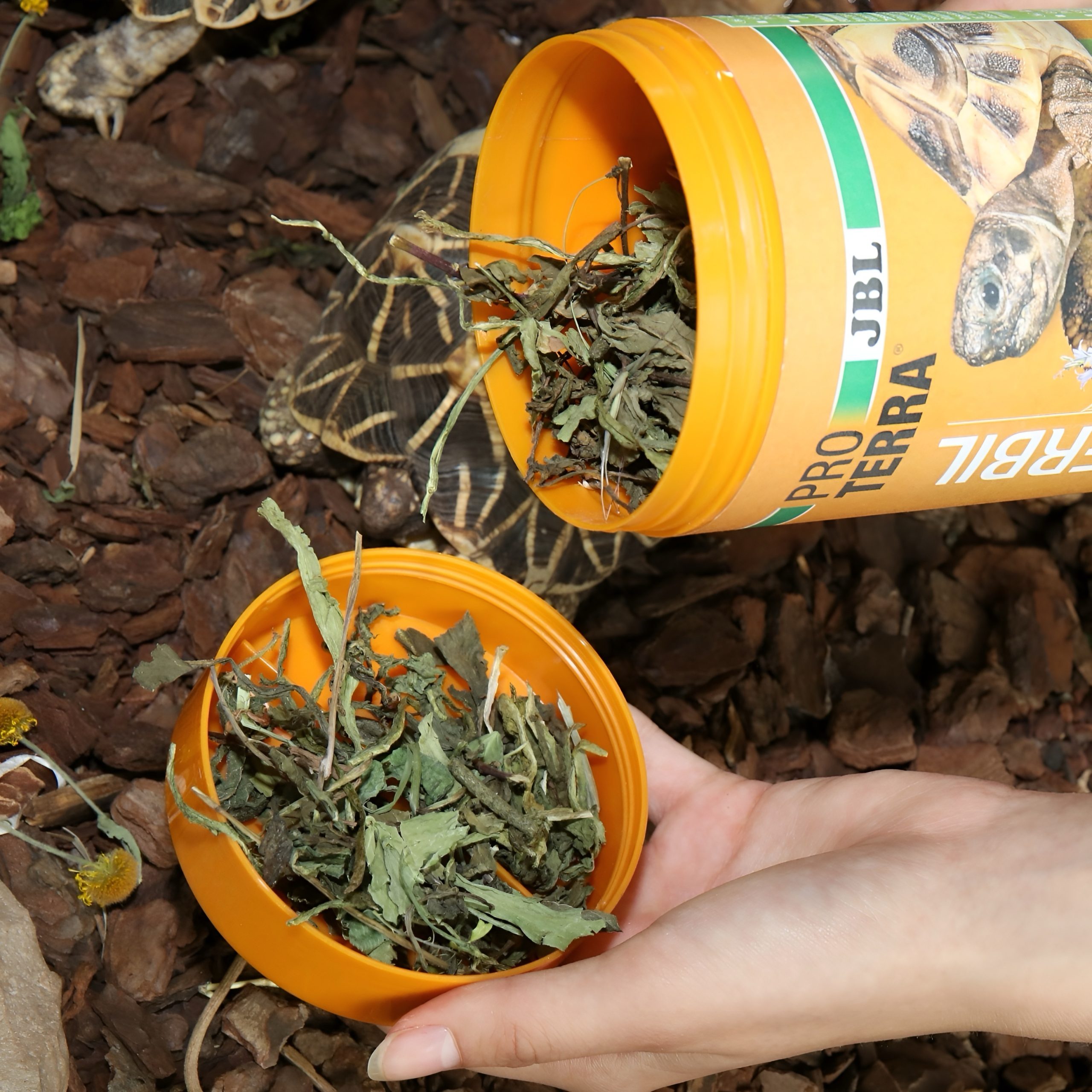 “Treat your tortoises with healthy foodTortoises are gourmets and certainly won’t eat everything. However they do enjoy some foods they shouldn’t eat at all. Tomatoes, citrus fruit and flesh are unsuitable.The composition and enrichment with tasty herbs of JBL PROTERRA HERBIL was developed in cooperation with Dr. Petra Kölle at the University in Munich. Acceptance trials clearly showed that turtles clearly differentiate between different foods offered and to some extent have personal preferences for individual foods from the JBL PROTERRA range. Because even if a food is nutritionally perfectly composed it firstly needs to be accepted by the animal! With JBL PROTERRA HERBIL this has been achieved in a truly outstanding way.With JBL PROTERRA HERBIL your turtles receive an ideal complete food. Of course you can also collect green plant food and herbs to supplement their basic nutrition in summer. The other JBL PROTERRA foods VEGABIL, FRUCTIL and FLORSIL are an ideal and species-appropriate supplement to JBL PROTERRA HERBIL.Tortoises like variety. Turtle species for which this food is ideal (examples):- Red-footed tortoise- Star tortoise- Leopard tortoise- Marginated tortoise- Hermann’s tortoise- Spur-thighed tortoise- African spurred tortoise- Four-clawed tortoiseJBL expeditions often visit turtle habitats, be it in the deserts or, even more frequently, in the wetlands of the tropics. The observations of their way of life and eating habits are incorporated into the development of the JBL foods. This information directly from the wild is extremely valuable, as it would otherwise hardly be available.The aim should always be to care for the animals in a species-appropriate way and ideally to provide for offspring in order to reduce the removal of species from the wild. Although breeding is not absolutely necessary for some species, as the species relevant to the trade come from offspring or are not endangered, JBL nevertheless considers it desirable to breed pets.”