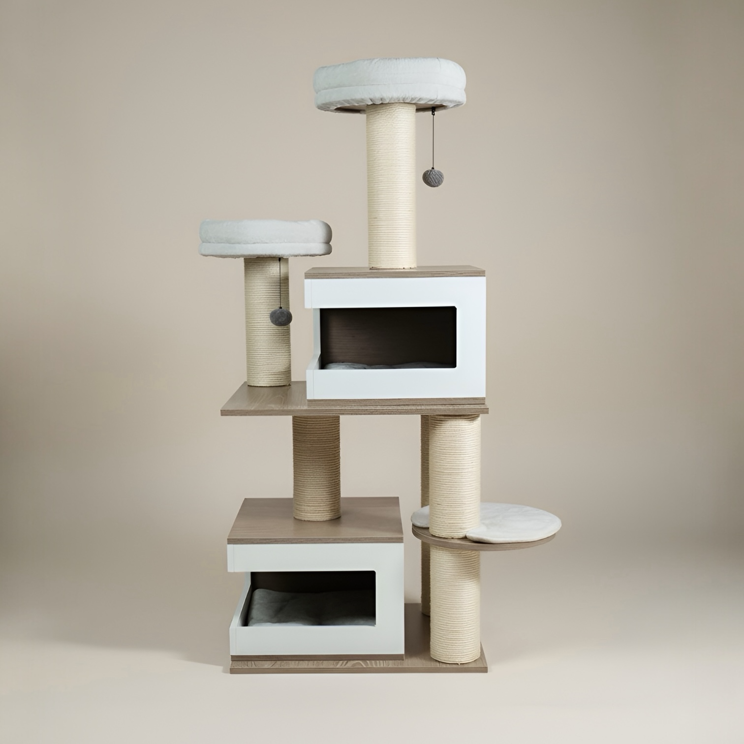 Crafted from FSC certified MDF and featuring durable sisal posts this cat tree is designed to meet your cat’s everyday needs
