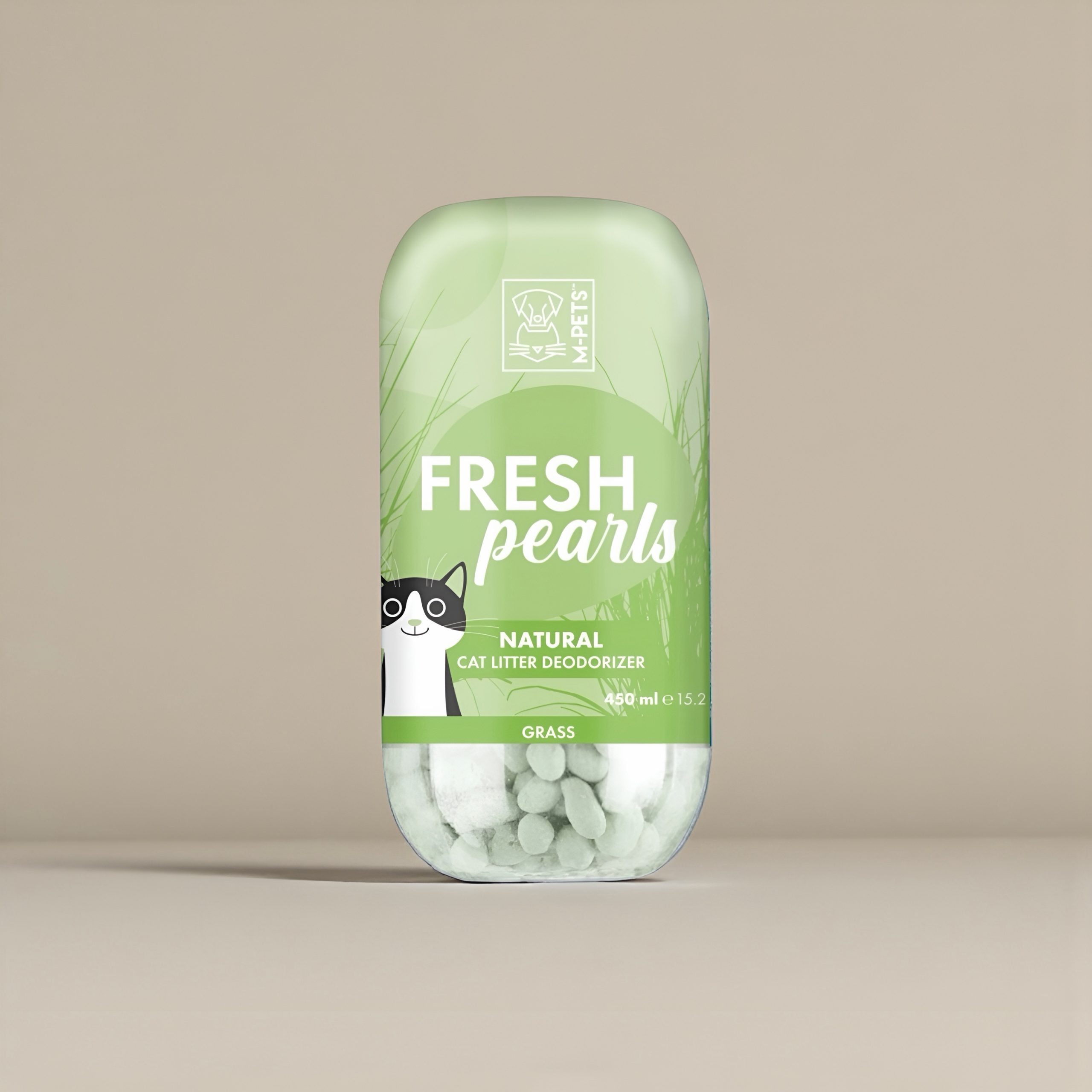 Natural & Safe certified M-PETS FRESH PEARLS absorbs – captures and neutralizes odoursLab-proven to have antibacterial properties and to effectively deodorize the whole cat litter boxEasily sprinkle on top of any type of cat litter-Absorbs – Captures and Neutralizes Odor-Safely Inhibits Bacteria – Removes Odor from the Source-Natural and Safe – MSDS Certificate and SGS CertificateSizes-450 ml