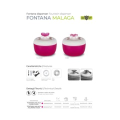 “MALAGA Cat Water Fountain encourages your cat to drink more water, which helps prevent urinary tract diseases, ensures proper functioning of the kidneys and can prevent the formation of kidney stones.Compact, ergonomic design, included :water fountain with pump and one filterflower-shaped spoutcolor : Pinkpower cord length: 1.4mThe MP Bergamo MALAGA water fountain is a perfect solution for cats of all ages.Unlike a bowl, a fountain only offers fresh water.The set consists of a fountain and one replaceable filter.”