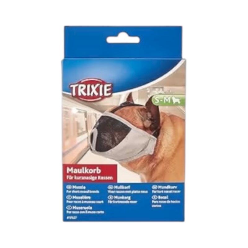 MUZZLE FOR SHOT NOSED BREEDS, POLYESTER S-M 24 CM GREY