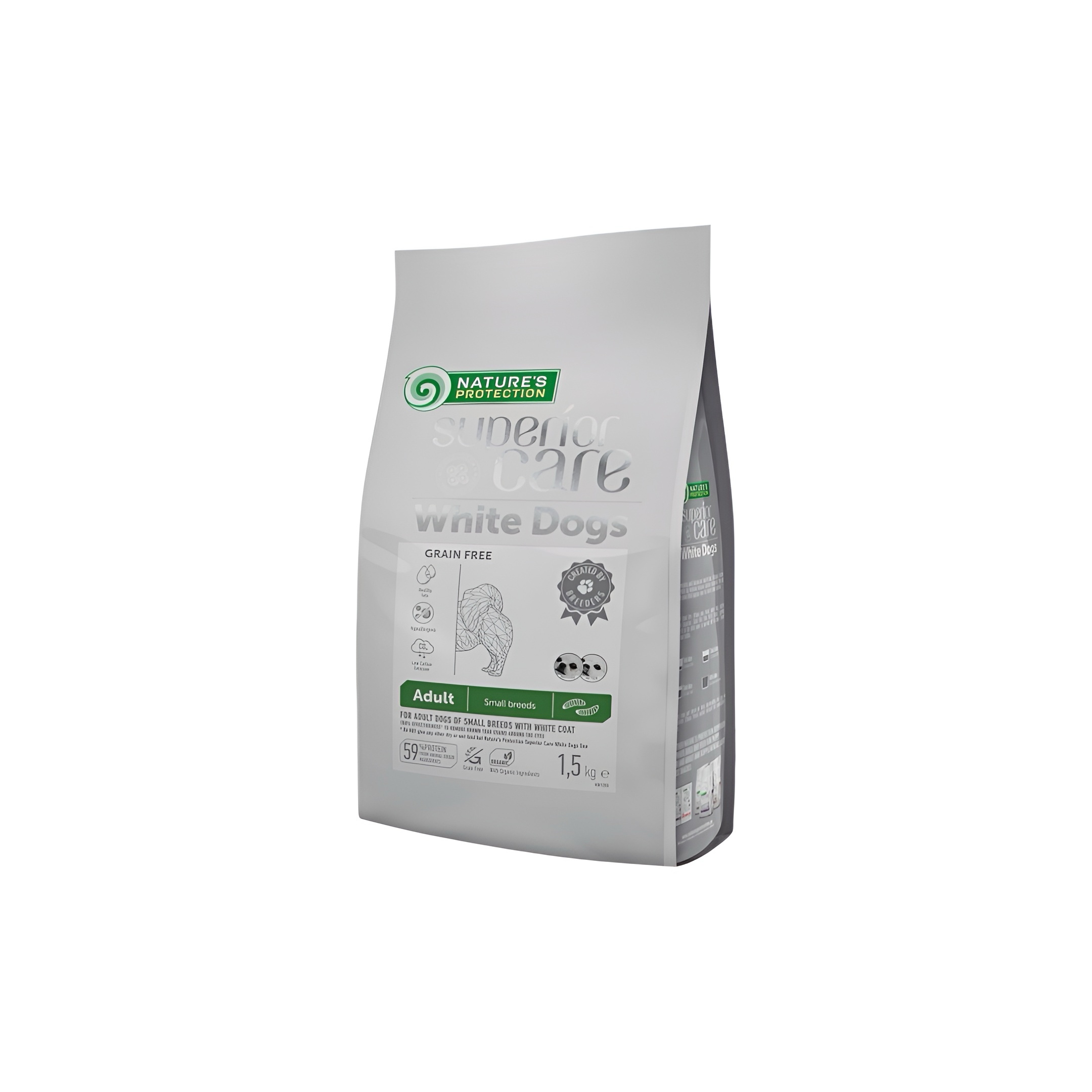 “Nature’s Protection Superior Care Grain-Free Insect Protein Dry Food for Adult Small Breed Dogs contains the Tear Stains Off formula – a carefully selected amino acid complex and fully balanced ingredients in the composition that can help fight brown tear stains around the eyes, muzzle, paws or other. pet. The main source of protein is highly digestible insect protein, containing essential nutrients, including chitin and lauric acid, which have hypoallergenic properties and are essential for muscle development, maintaining the immune system and digestive health. The highest quality protein source and raw materials will not only provide your pet with all the effective nutrients, but also provide ideal digestibility and palatability for dogs with white and light-colored hair. The food is known for its well-balanced composition and raw materials that help fight brown tear stains and maintain healthy skin and hair.The balanced composition of this dry dog food is enriched with clinoptilolite of volcanic origin from nature – MicroZeoGen . It helps remove toxins from the animal’s body, and after its detoxification, effective nutrients, vitamins and minerals are easily absorbed by the body. The composition is enriched with Omega-3 and Omega-6 fatty acids necessary for healthy skin and coat. As well as mono- and polyunsaturated fatty acids that support the immune system, and saturated fatty acids provide the dog with energy.Insects as a source of proteinHypoallergenic protein sourceSuitable for dogs prone to allergies and food sensitivities.Very eco-friendlySource of high quality proteinRich in essential amino acids, vitamins and minerals.HypoallergenicCod, blue whiting, and pollock are valued for their hypoallergenic properties. In addition, white fish contains more vitamin A and D than other fish, which is vital for dogs. Healthy Fats The nutrients in this food contain both mono- and polyunsaturated fatty acids that strengthen the dog’s immune system, as well as saturated fatty acids that provide them with the necessary energy. Tear-Free Formula Carefully selected ingredients and a properly balanced formula maintain a clear composition of tears and saliva, which can help remove brown spots around the eyes, muzzle, and paws. Reduced Risk of Allergies The dog food consists exclusively of first-class ingredients and is carefully developed to avoid common allergens such as wheat, pork, and beef. The composition does not contain artificial colors, flavors, and preservatives that can cause allergic reactions in dogs.Product benefits:HypoallergenicThe “”No Tears”” FormulaRich in proteins and fatsIngredients of the highest qualityEcological – less use of land, water and CO2Balanced nutritionNatural antioxidantsGrain freeMain ingredients:Protein source – insects: hypoallergenic, easily digestibleMicroZeoGen: Volcanic Clinoptilolite from Nature for Body Detoxification, Nutrient Absorption and Immune System SupportBalanced Amino Acid Complex: Helps combat brown tear stains and maintain healthy skin and coat.The food does not contain: Artificial colors and flavors, preservativesNATURE’S PROTECTION Superior Care is a line of dry dog food Super Premium, known for its innovative ingredients and the latest technologies in healthy pet nutrition. This complete dog food contains only high-quality ingredients and protein sources.”