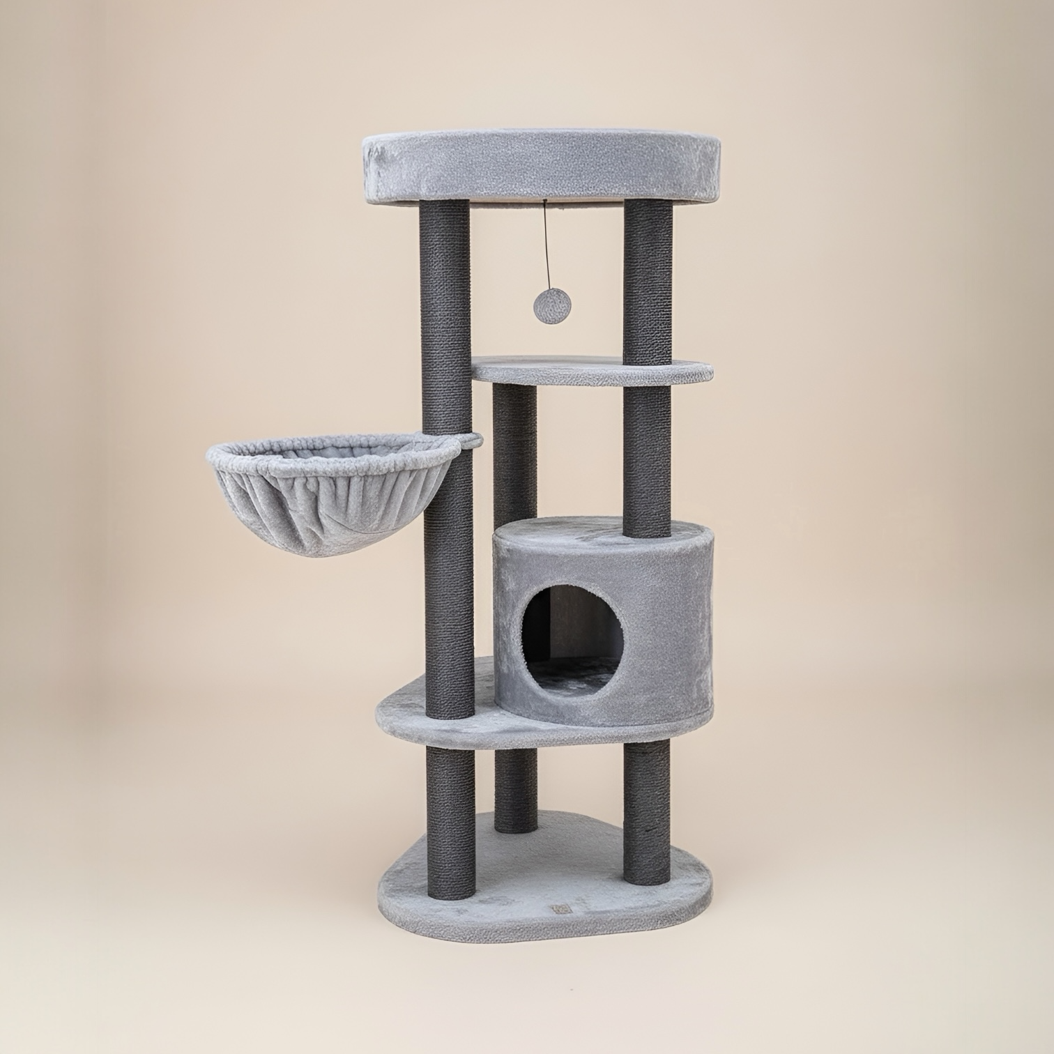 PET REBELS KRABPAAL CHARLOTTE 134 CAT TREE – GREY – 9 CM POST – WITH HAMMOCK