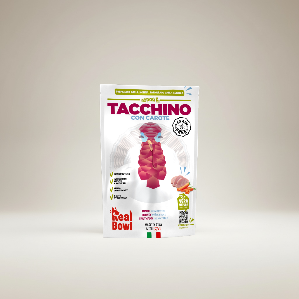 Real Bowl Turkey Grain Free is a complete food for dogs of all sizes with a single animal protein source.