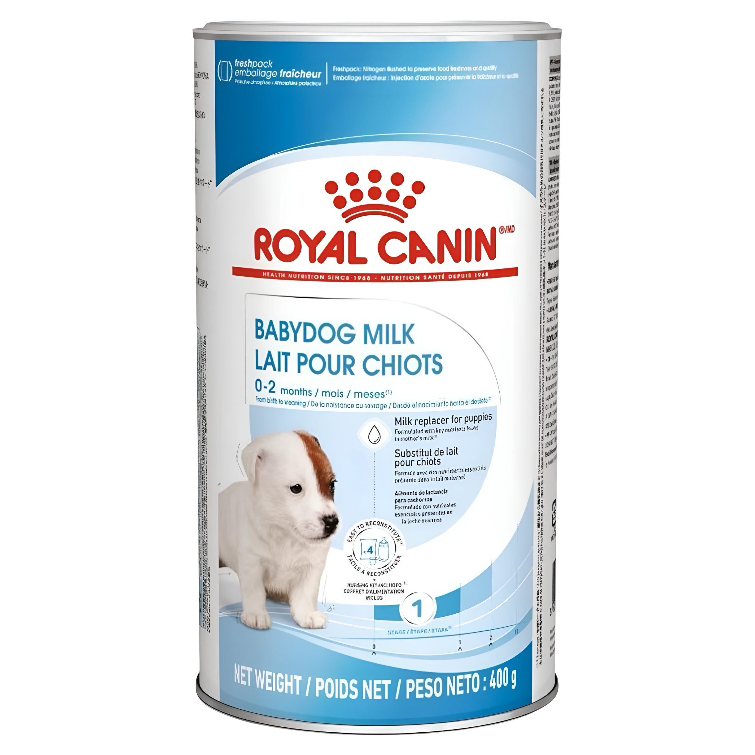 Suitable for first age puppies from birth to weaning, ROYAL CANIN® Babydog Milk is formulated to be as close as possible to maternal milk, with high energy and protein levels to support healthy growth. This formula contains a lactose content very close to that of maternal milk and is composed of carefully selected, ultra-digestible proteins and prebiotics to support your puppy’s digestive health. ROYAL CANIN® Babydog Milk is enriched with DHA (an essential Omega-3 fatty acid) that is naturally present in maternal milk and helps to support your puppy’s cognitive development. It is recommended that you refer to the on-pack feeding guide to make sure your puppy gets the appropriate volume for optimal support. Feeding kit (bottles, teats and scoop) included.