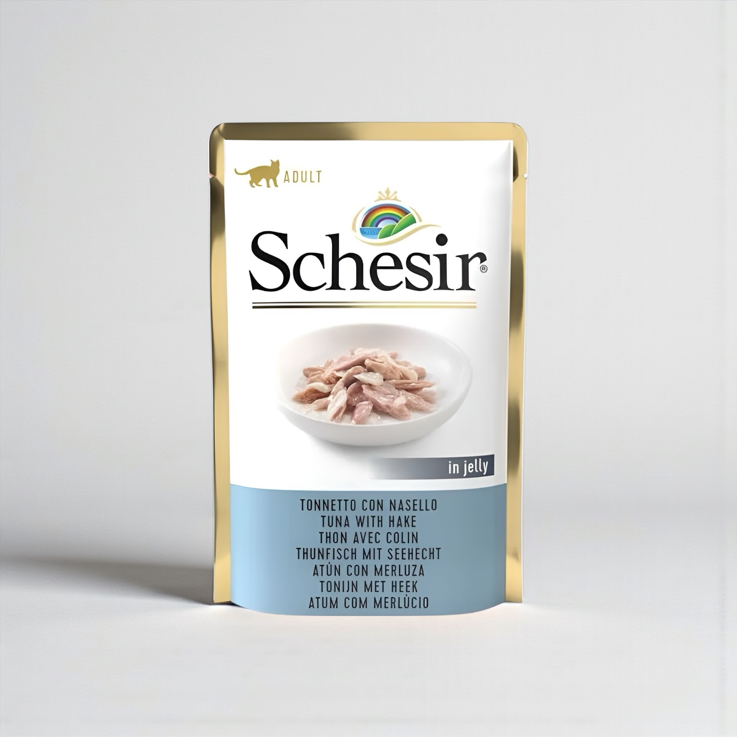 Complementary wet food for adult catsReal steamed tuna fillets with hake in jelly for a natural and irresistible mix.• Tuna caught in the open sea• Few simple, natural ingredients• High in protein, low in carbohydrates• Promotes extra hydration• In soft jelly