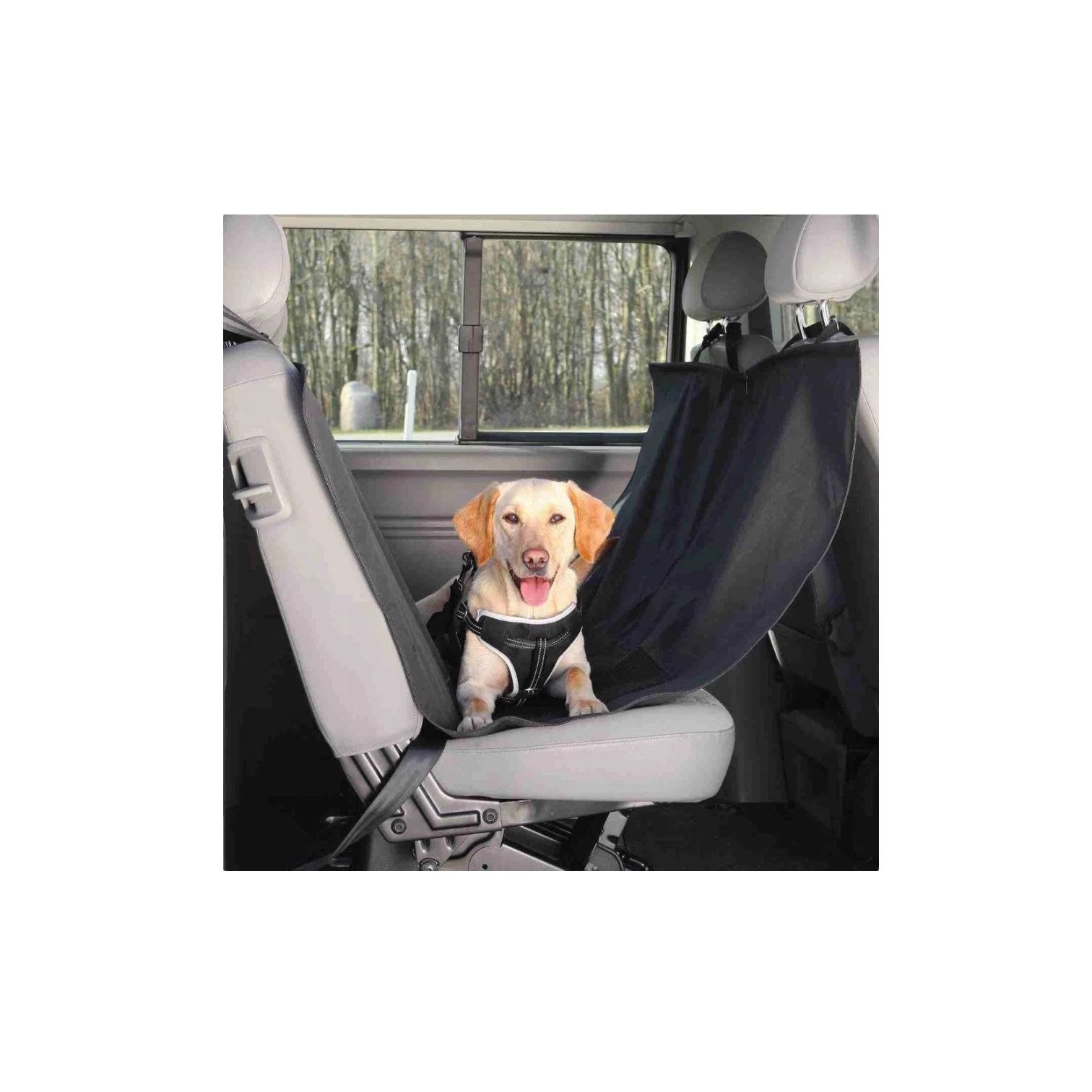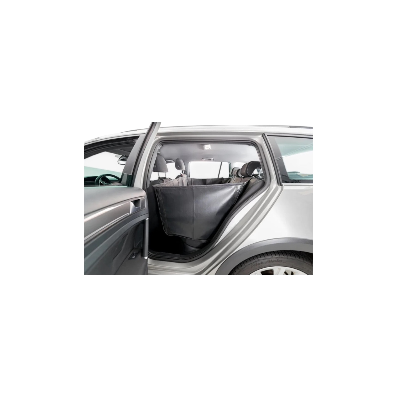 “for the back seatanti-slip coating offers more hold for the dogextra high sides prevent the dog from jumping out and protect the inner doorside parts can be folded down for climbing in and out due to two zips; that way, upholstery and inner cladding are protectedwith fold-away section, space for a person on the back seatstable in shape due to option to intergrate metal strutsbelt slits make it possible to buckle the dog uppolyesterImportant: For comprehensive accident protection use a certified car safety harness.”