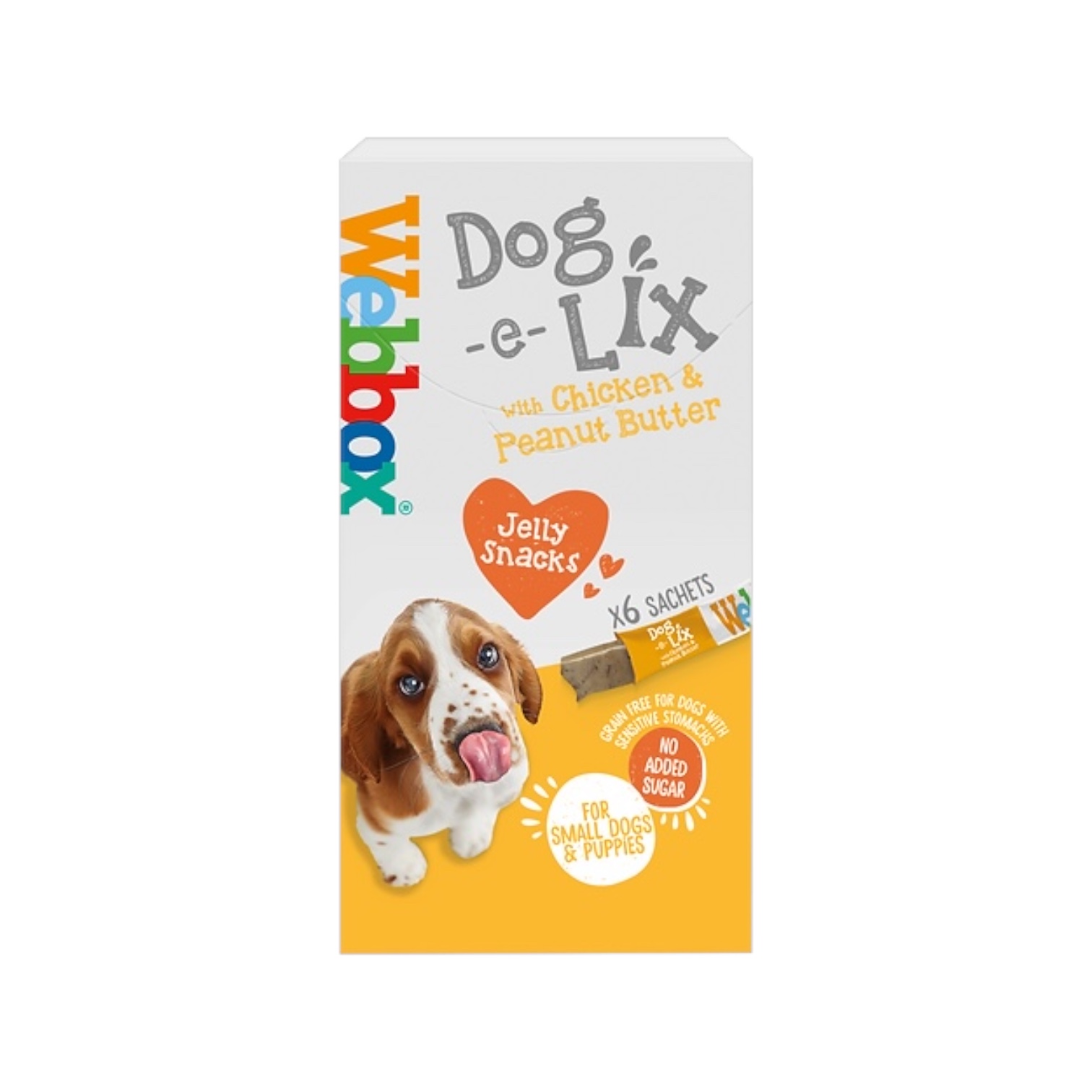 “Webbox Dog-e-Lix is our exciting new range to take on the nation’s favourite cat treat, Webbox Lick e Lix! Cats absolutely love our Lick e Lix, so we thought dogs deserved their own version of this scrumptious treat too. Dual flavoured treats, made with fresh meat in a moreish jelly which are sure to be your dogs favourite treat.Webbox Dog e Lix with Ham & Cheese is a uniquely delicious treat for dogs and puppies from 3 months. It is low fat and low calorie with no added sugar and no added preservatives or colours so you can sure your dog can be happy and healthy. It is also wheat free and grain free, making this a healthy tasty treat that your dog will love! Made with fresh meatEncourages interaction between pet and ownerNo artificial preservatives or coloursGrain free recipe for dogs with sensitive stomachsPuppy friendlyNo added sugarLow fat and low calorie treat”