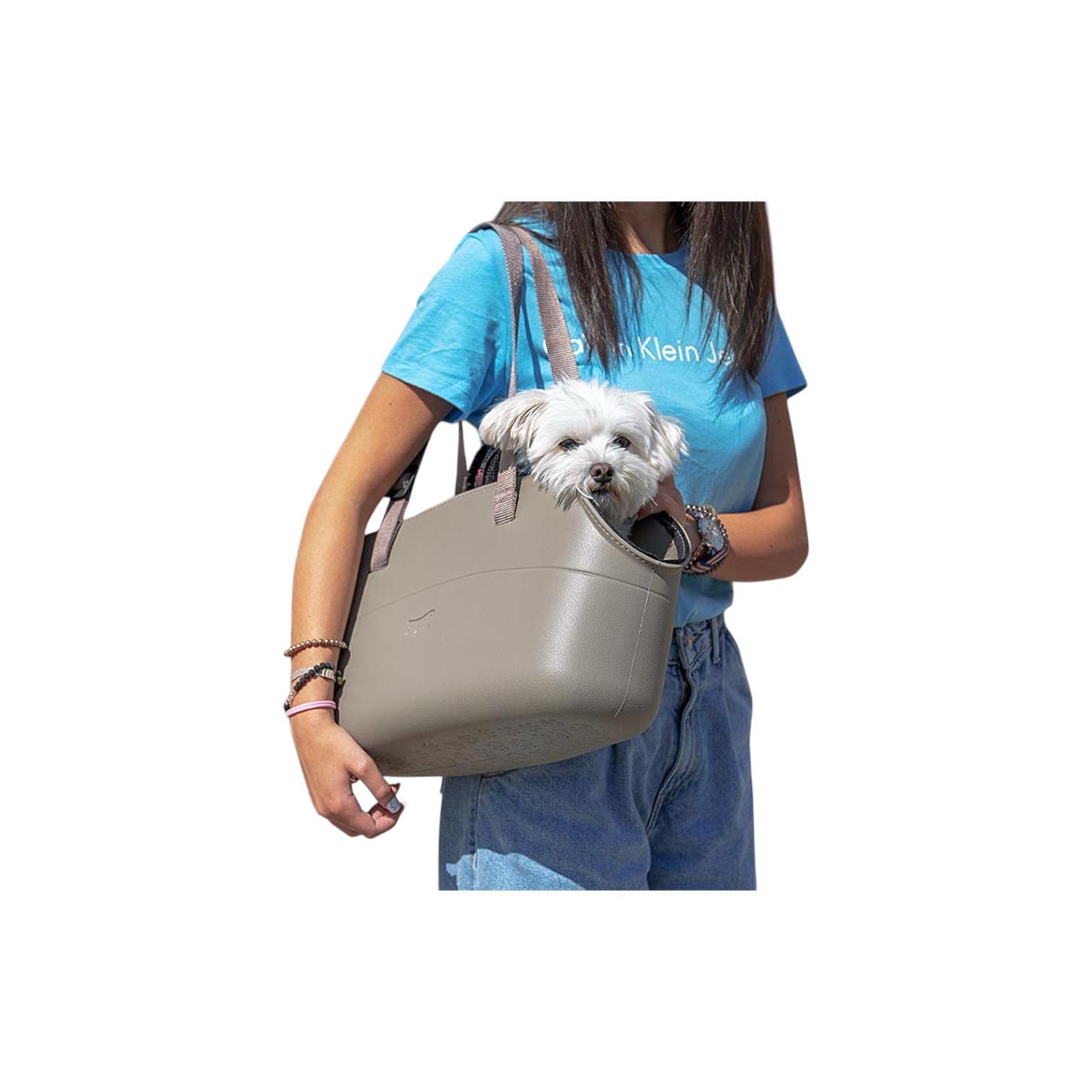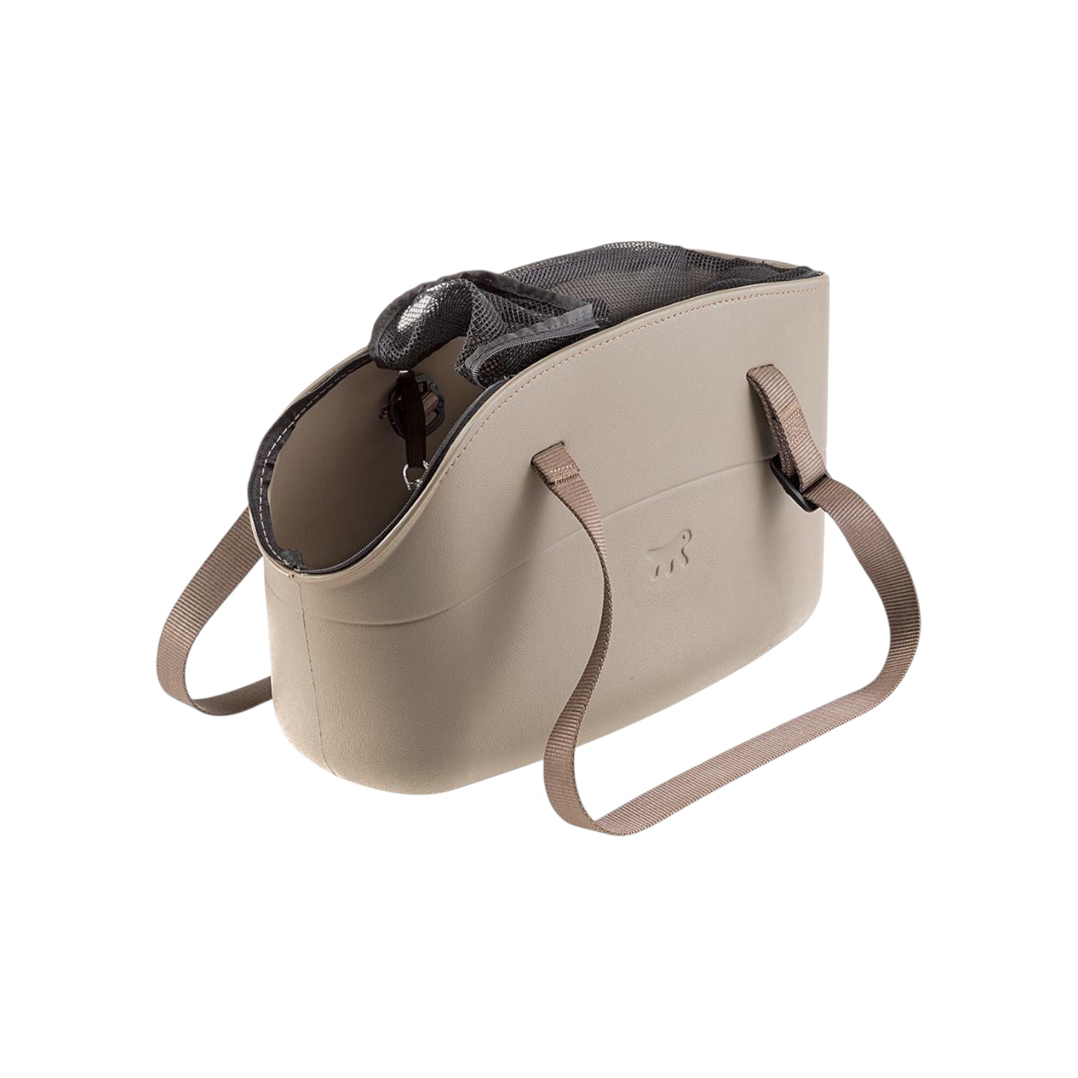 “Pet bag made of EVA (Ethylene Vinyl Acetate)Ideal for small dogs, cats, rabbits and ferretsEquipped with a protective net that can be opened and closed with a zipperFolding-up net and lockable in two points with velcroStrong and resistantSoft and comfortableWashable and waterproofAdjustable handles for carrying on the shoulder or by handComplete with internal safety strapBottom with non-slipMaximum capacity 8 KgDo not expose to temperatures exceeding 40° C. With Me Pro is a soft and practical bag suitable for the transport of animals (maximum weight 8 kg), small dogs, cats or even bunnies. Made of EVA, a special type of rubber (Ethylene Vinyl Acetate), it is equipped with a sturdy protective net for greater safety of the animal. The net can be opened thanks to a convenient zipper, folding-up and lockable in two points using the Velcro applied. This way you can allow your pet to keep its head out during the journey. Made in Italy, it is offered in a single dove-grey variant that will perfectly match your pet’s other accessories. The sturdy adjustable handles also allow you to adapt it perfectly to carry it on the shoulder or by hand, as you prefer. The internal safety strap can be attached to your dog’s collar.The With Me Pro pet bag is really very practical: the hygienic, washable and waterproof material with which it is made, in fact, prevents dirt from lurking as happens in traditional fabrics. It cleans quickly with water and neutral soap. Finally, on the bottom, it has nice footprints that act as anti-slip and ensure stability when placed on the surfaces.”